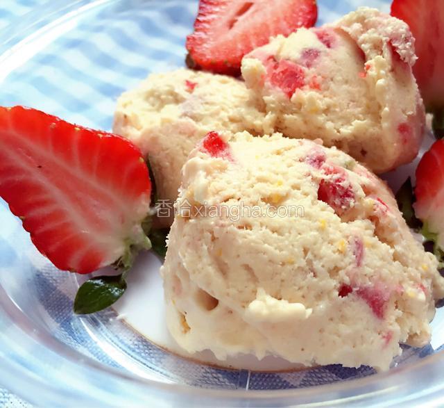 4.晾凉后倒入一大勺草莓汁,草莓汁做法请参考我菜谱里关于草莓汁的菜谱;