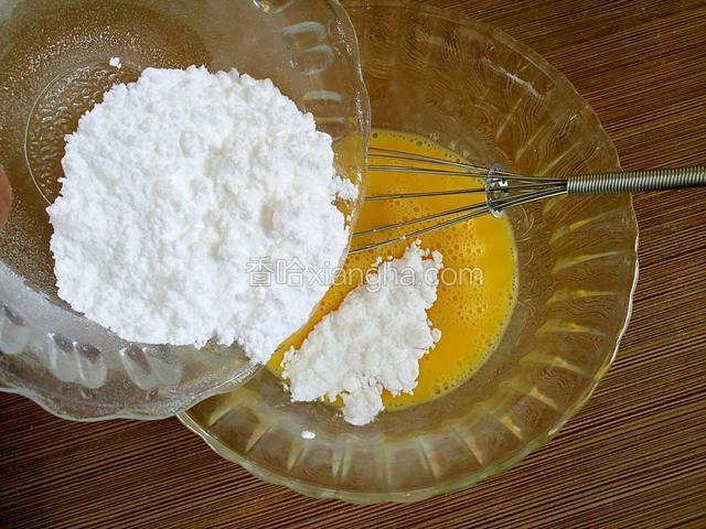 3.加入糖粉和隔水融化的黄油搅拌均匀。