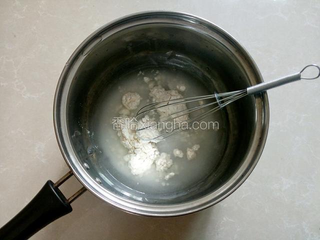 1.先做汤种料,小奶锅中加入100g清水和20g高筋面粉搅匀。