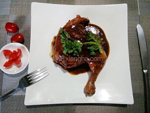 2.用小餐叉在鸡腿上戳小孔,易入味