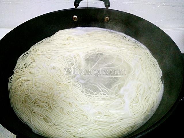 6.锅里水烧开,放入面条煮熟。