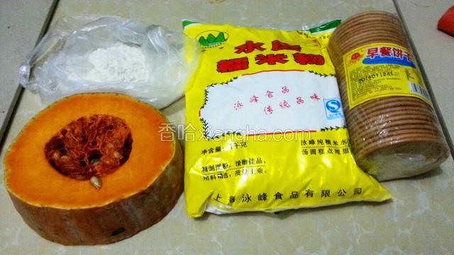 1.准备好南瓜,糯米粉和面粉