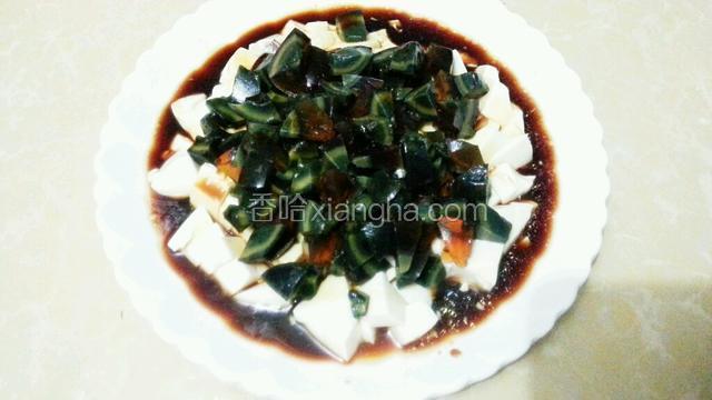5.在碗中调好酱汁,盐:小半勺,味精:小半勺,酱油:少许,蒸鱼豉油:少许,醋:少许,香油:3滴