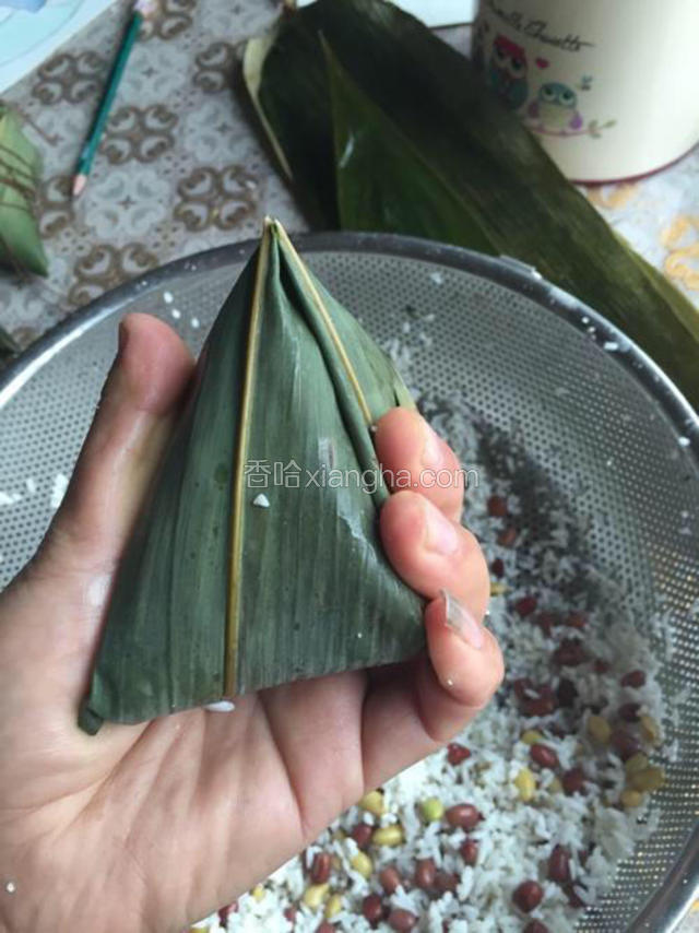 6.还有一种尖头粽子的包法.其实粽子有很多种包法.我这里只给大家演示两种