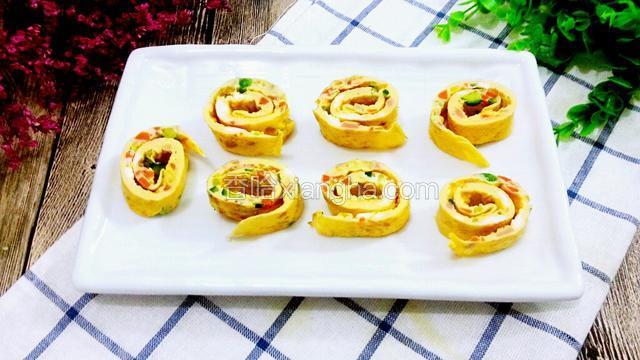 4.将切好的材料放入蛋中