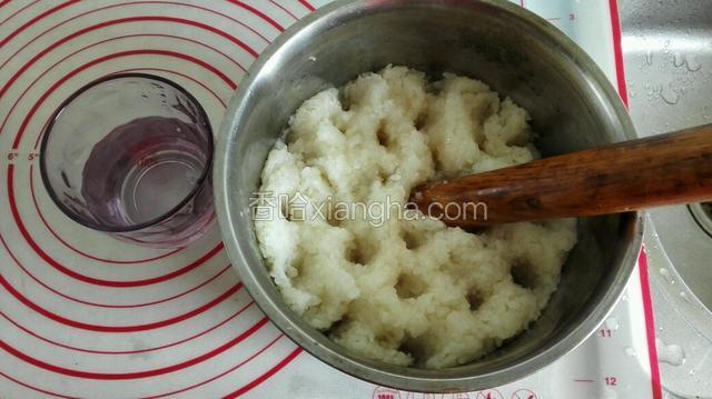 6.关火趁热倒入保鲜袋,揉搓成糯米坨