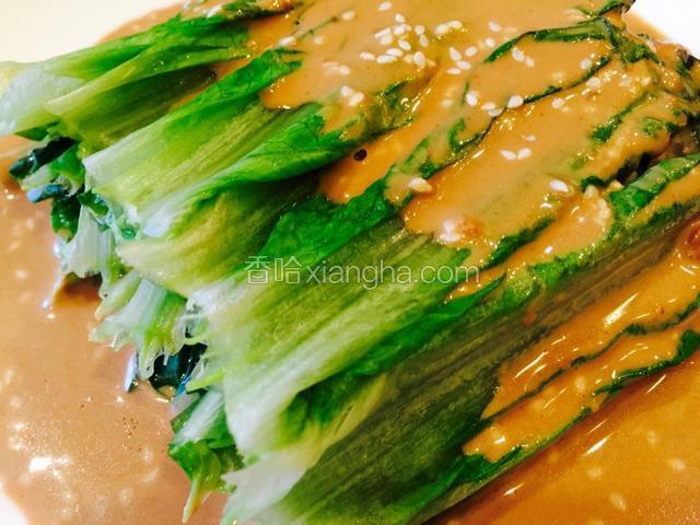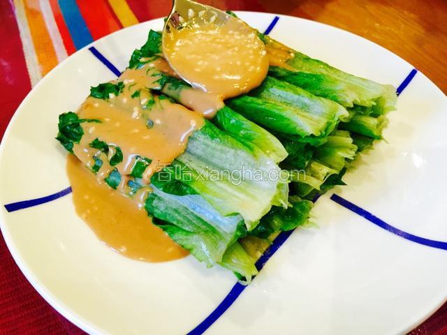 1、莴笋叶和尾部都可以使用,焯水时间要极短; 2、买来的芝麻酱需要加调料调酱,否则味道很单一。