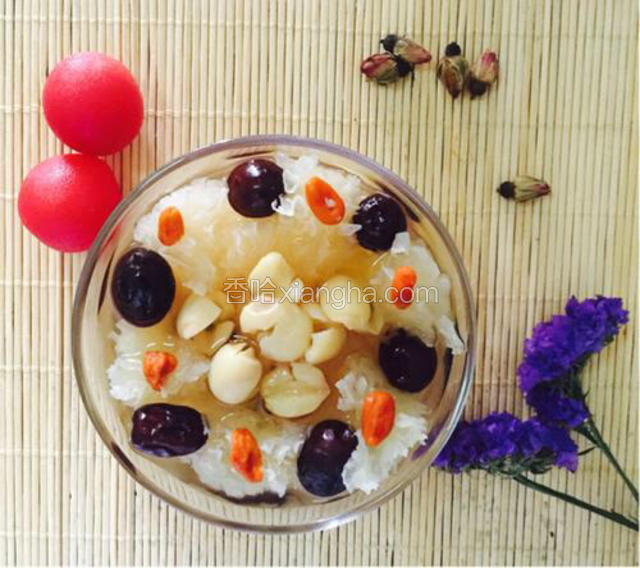 2.银耳,莲子,红枣用清水泡发20分钟,泡软;银耳可提前泡发1个小时左右!