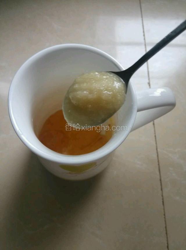 3.先在空杯中放入一大勺柚子茶(约40克左右)。
