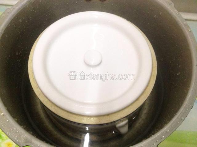 6.放入炖盅,盖盖子,放灶上,开大火,锅上汽,转小火炖1小时.