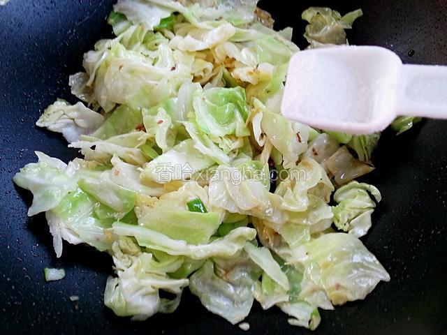 2.圆白菜洗净用手撕成片状,根茎去除不用