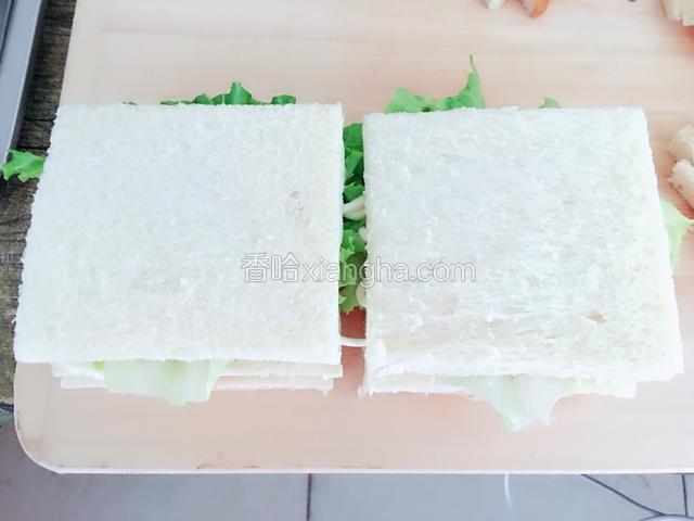 5.盖上一片土司,上面均匀抹上沙拉酱