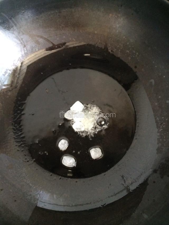 3.锅里的鸡爪取出,从新起锅倒入少许油…油开以后放入白糖冰糖熬糖色,小火慢熬