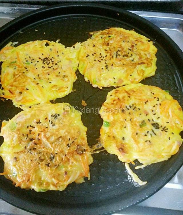 6.菜饼稍定型后撒上黑芝麻,一定要黑芝麻,白芝麻看不见哦