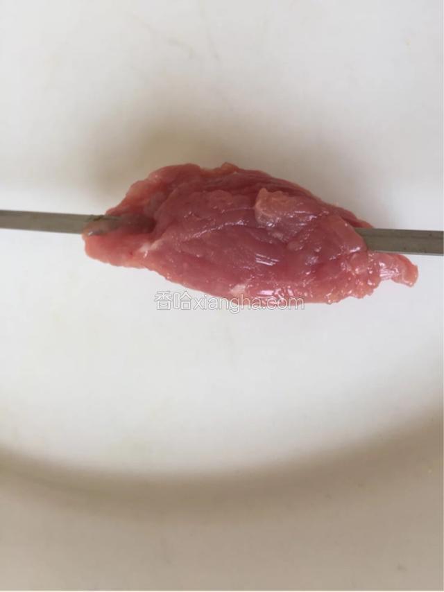 2.将菱形块角对角穿好,肥瘦穿插味道更佳
