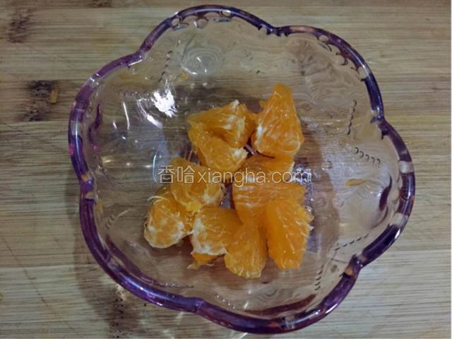 4.将大芒果粒,丑橘粒和苹果粒放入容器中