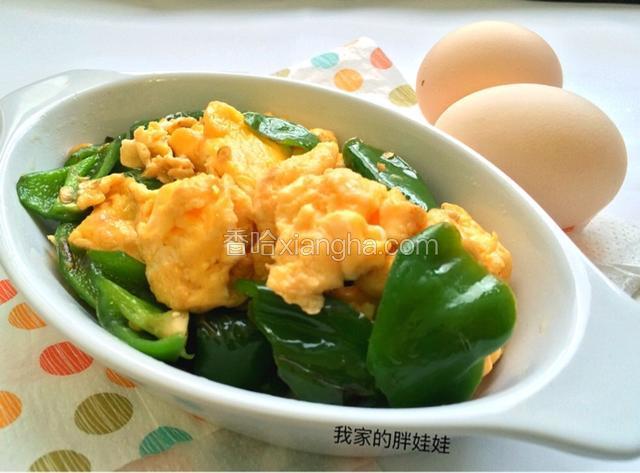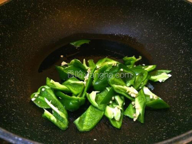 6.热锅里再次倒入少许油,然后倒入尖椒