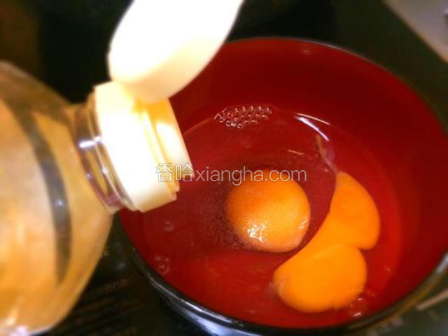 2.打两个鸡蛋,加入少许盐、料酒、清水