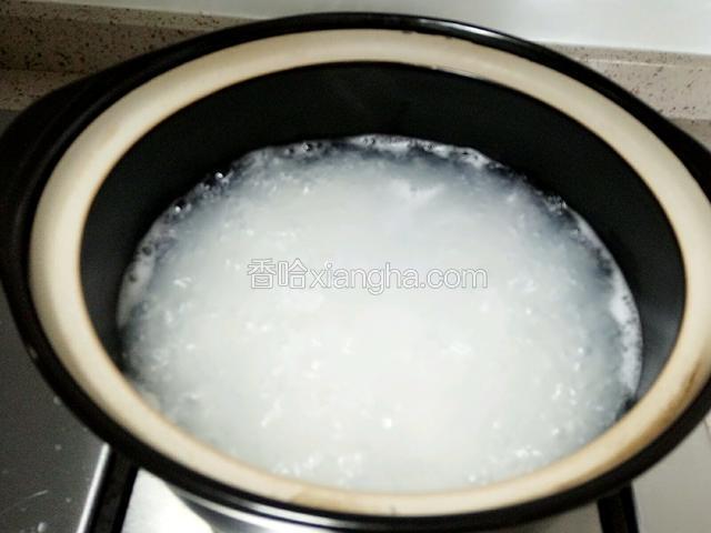 3.锅里水开后放入大米,这期间要用勺子不停地搅动,以免粘锅。
