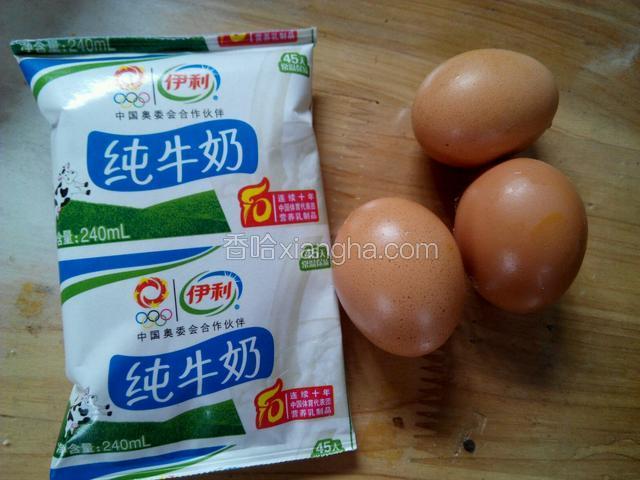 1.准备食材:鸡蛋3个,纯牛奶1包。