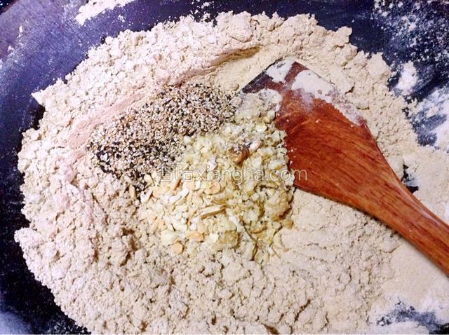 2.把花生仁、核桃仁、黑芝麻、白芝麻依次装入保鲜袋中。