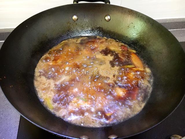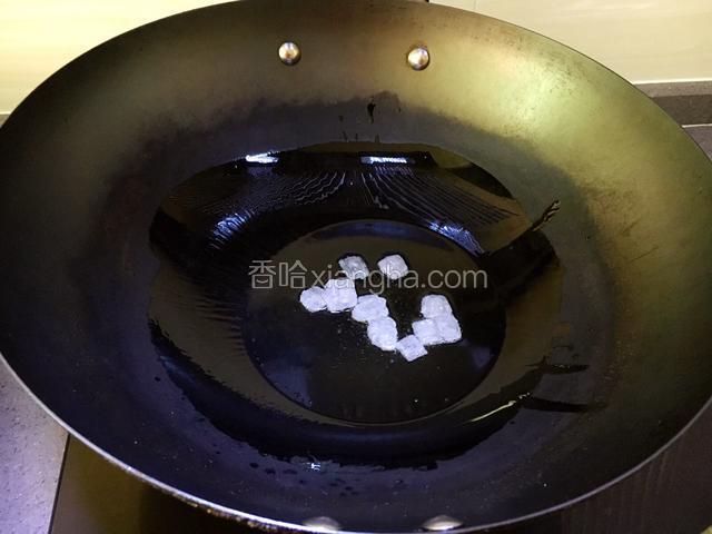 4.锅中倒油,冷油下冰糖,小火慢慢至糖融化。