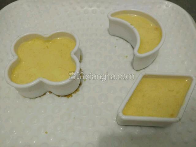 2.把饼干倒入模具中,压平,放冰箱冷藏30分钟。