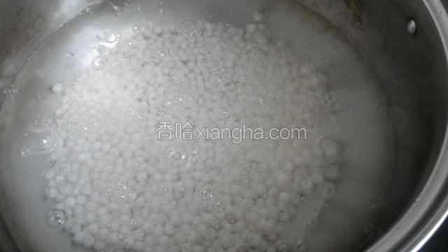 2.锅里放水烧开,放入西米,中小火,盖锅盖煮
