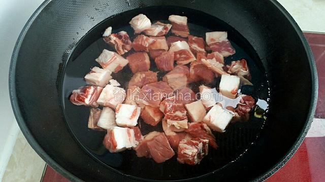 3.牛肉冷水下锅,煮开后捞出洗净沥干水分备用。