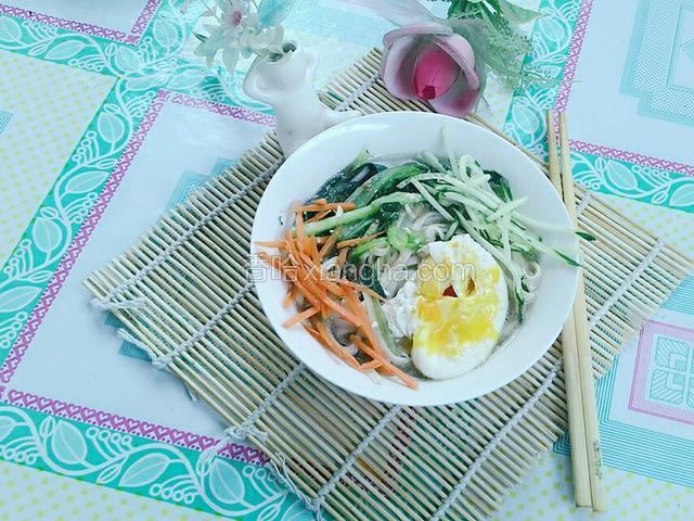 6.搭配黄瓜丝,胡萝卜丝也很不错哦。