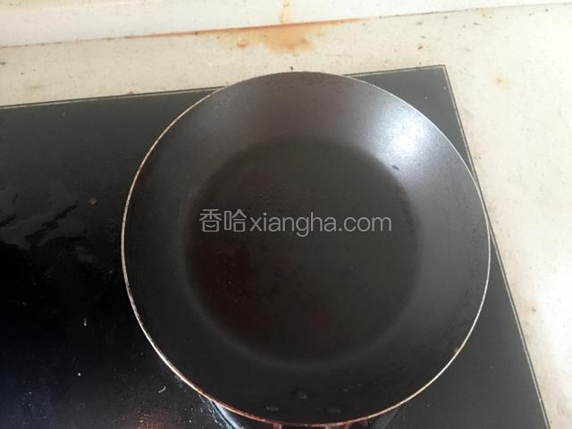 4.开燃气后放上一个干净的锅,因为牛排抹过油了,不用添油。