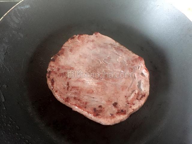 6.再煎另一面,两面煎的时候都用铲子压一下。