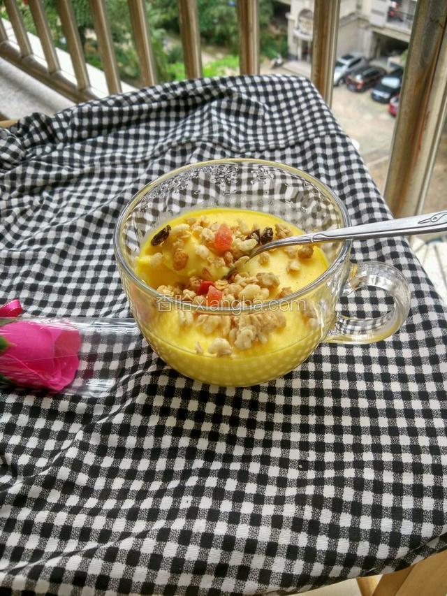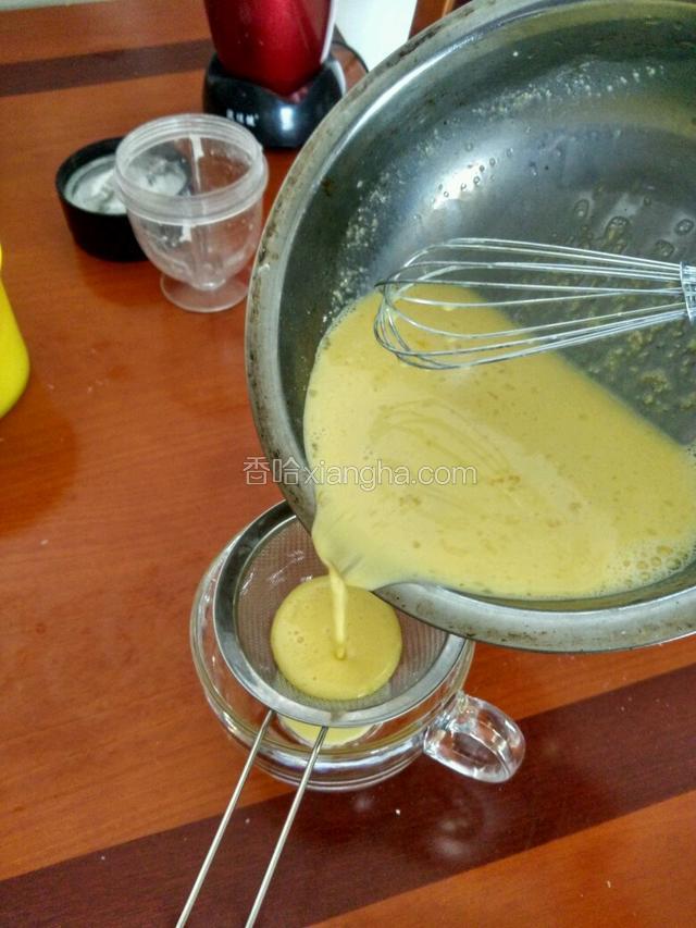 5.融化好的牛奶放入鸡蛋中,再加入打碎了的燕麦,再搅拌均匀