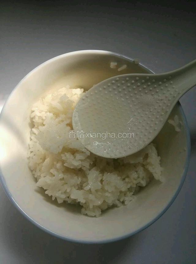 5.米饭加寿司醋,少许白糖和盐拌匀。(各比例是5:5:1)