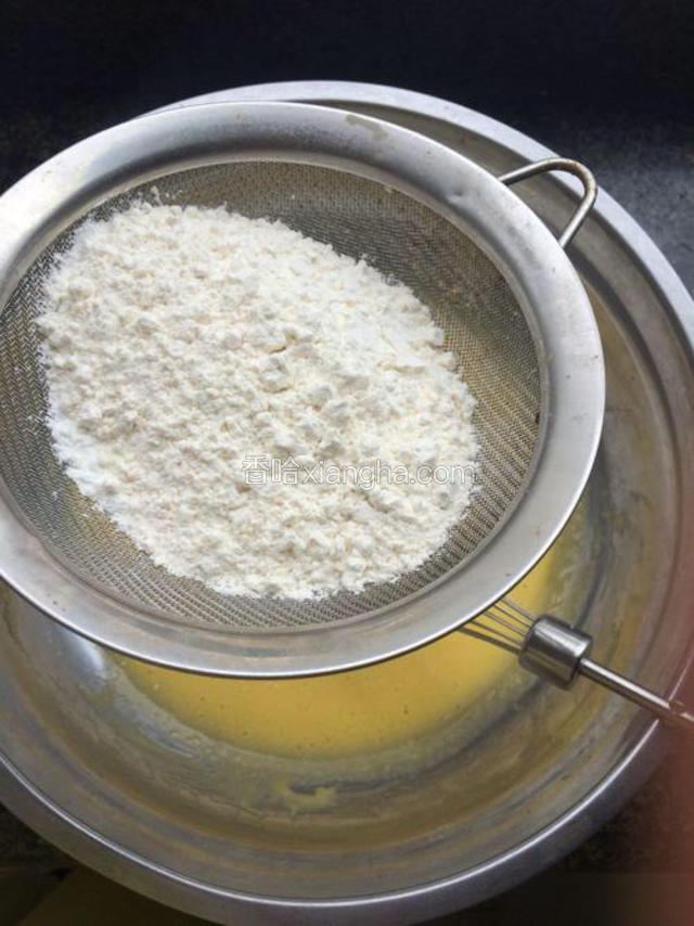 4.切拌均匀,不要搅拌容易起面筋,做好的蛋黄糊