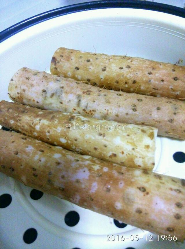 6.把剩余的山药边角料加入白糖一起用压面器挤压成泥。