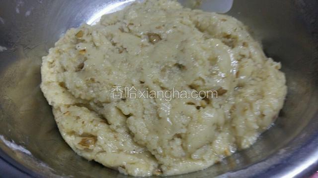 5.4、5两步骤的食材放在一起,再加入核桃仁,拌均匀。