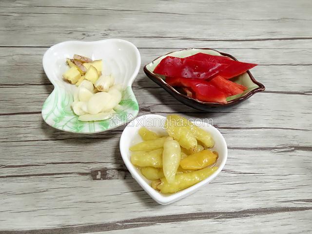 2.准备的佐料。彩椒切成菱形。(如图所示)