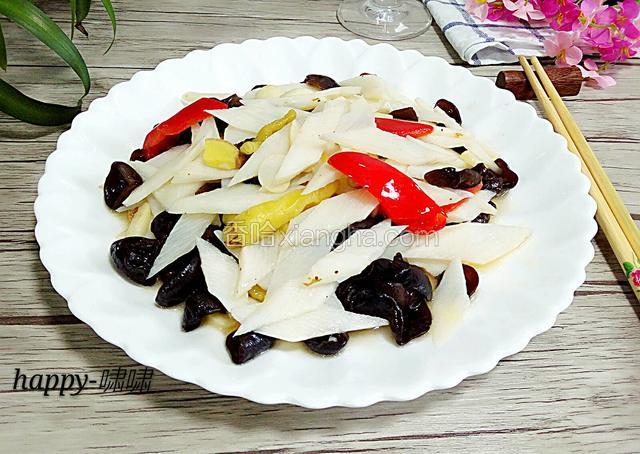 5.炒锅置水烧开,把山药,木耳一同放入锅里焯水2分钟。