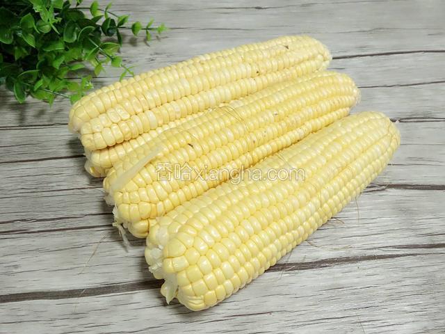 1.买来的新鲜玉米,剥去外衣,用水冲洗一下备用。