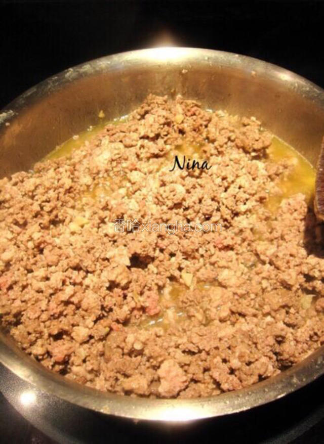 6.接着下牛绞肉翻炒。