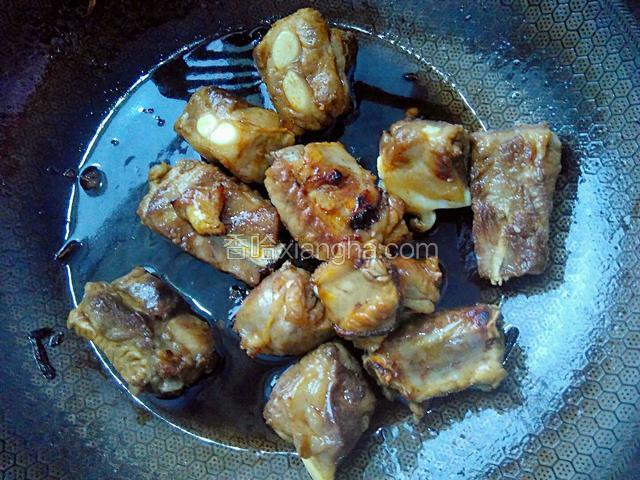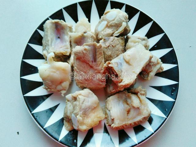 4.焯水后的排骨冲洗干净沥干水分,可用厨房纸吸干。