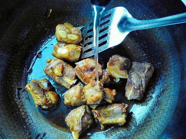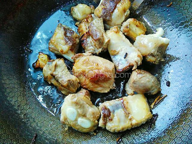 3.猪小排加姜片入凉水锅焯水一遍,去除腥味和血沫。