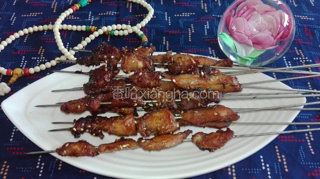 6.烤盘内刷上一层花生油,签子从尖头至二分之一处也刷一层油。