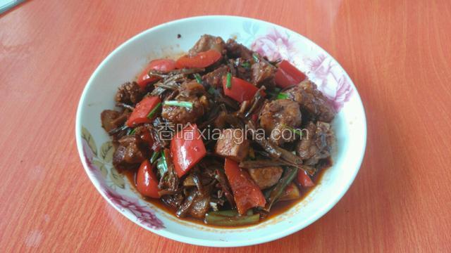 6.加一勺老抽翻炒一下盖上锅盖焖两分钟使肉香伴随着佐料释放出来。