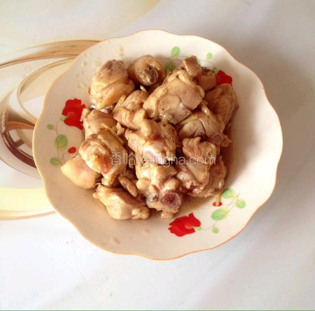 5.然后放入鸡肉块放入十三香料酒翻炒至三分熟