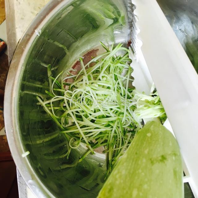 2.西葫芦洗干净,插丝,越细越好