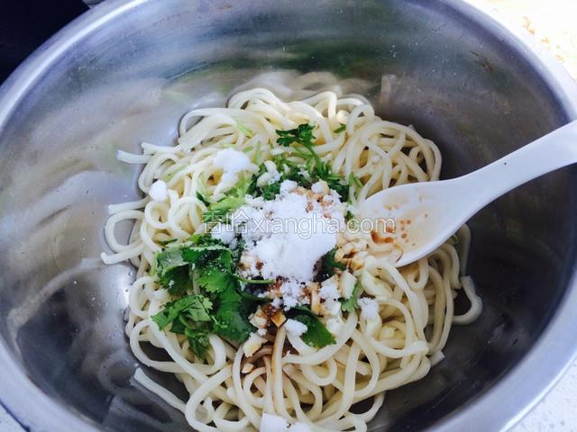 3.用熟油把面条搅拌均匀,防止粘连,利用风扇吹凉。
