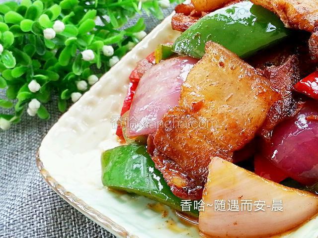 5.将肉切片;青红椒切片;葱姜蒜切下图样