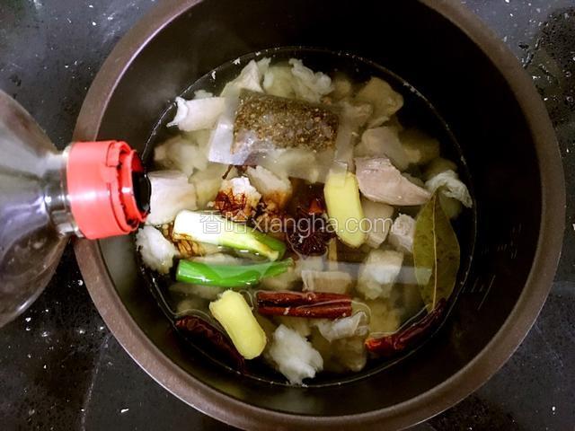 5.加入开水,水量淹没肉块两个指关节为宜。